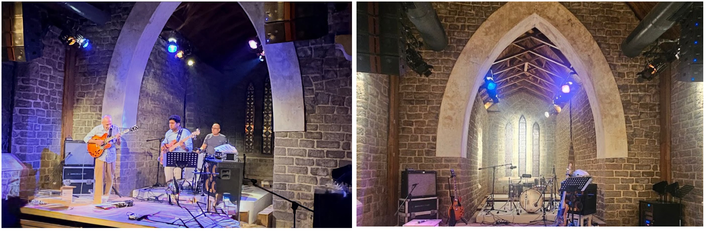 Under the shadow of vaulted wooden beams last Saturday, a jazz trio took the “pulpit.” What followed wasn’t a mere performance; it was a private devotion. The Lead Guitarist Sanjay Divecha’s  fingers moved with a lithe grace, casting notes that wandered through the nave like stray fireflies—luminous, unhurried, and searchingly beautiful. The Bass guitarist provided a grounding force that felt near-miraculous. It was a deep-timbered “Amen” vibrating through the floorboards, the kind of low-end frequency that hits you in the chest and tells you everything is going to be alright. And Adrian the drummer treated his kit with a fluid dexterity,  his beats as delicate as synchronized raindrops on a tiled roof, keeping time for a world that had, for seventy minutes, blissfully stopped turning.